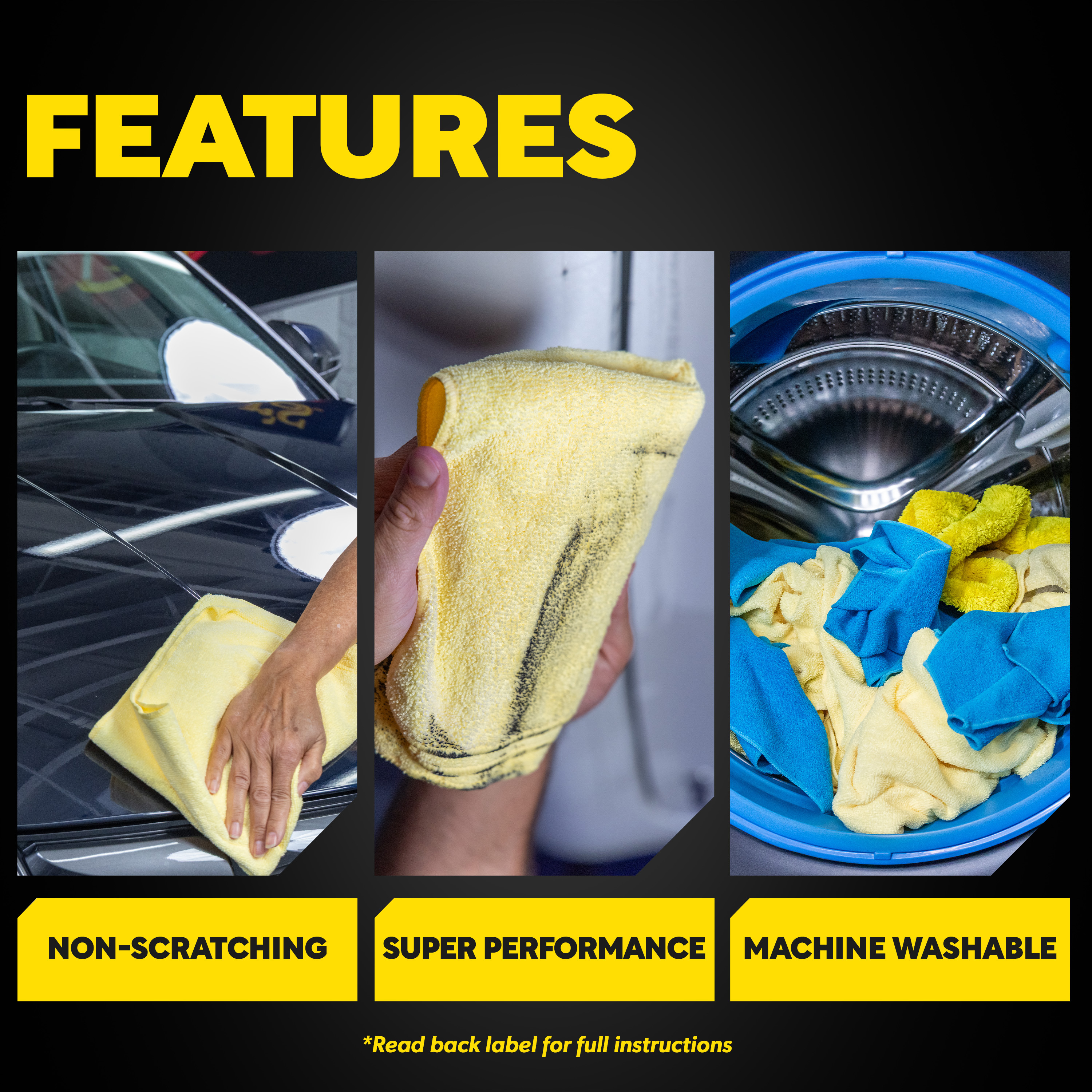 Meguiar's® Supreme Shine™ Mikrofaser ist ein unglaublich plüschiges Mikrofasertuch, mit dem sich spiegelglatte, schlierenfreie Ergebnisse erzielen lassen. Der dicke, tiefe, doppelseitige Mikrofaserflor absorbiert mehr als herkömmliche Frotteetücher und ermöglicht ein schnelleres Abwischen mit weniger Handgriffen.